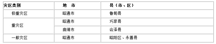 根據(jù)《云南魯?shù)?.5級(jí)地震災(zāi)害損失評(píng)估報(bào)告》(民函〔2014〕269號(hào))的規(guī)定,本通知所稱“受災(zāi)嚴(yán)重地區(qū)”是指極重災(zāi)區(qū)和重災(zāi)區(qū),“受災(zāi)地區(qū)”是指極重災(zāi)區(qū)、重災(zāi)區(qū)和一般災(zāi)區(qū)。具體受災(zāi)地區(qū)范圍見(jiàn)附件。